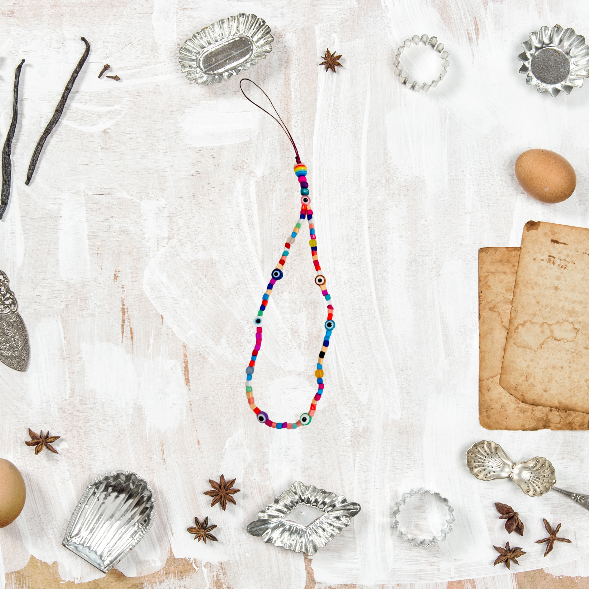 Add a touch of protection and style to your phone with our vibrant multi-color phone chain, featuring striking evil eye beads. This unique accessory not only brightens up your device with its lively colors but also brings a symbolic charm, perfect for warding off negative energy while keeping your phone secure .